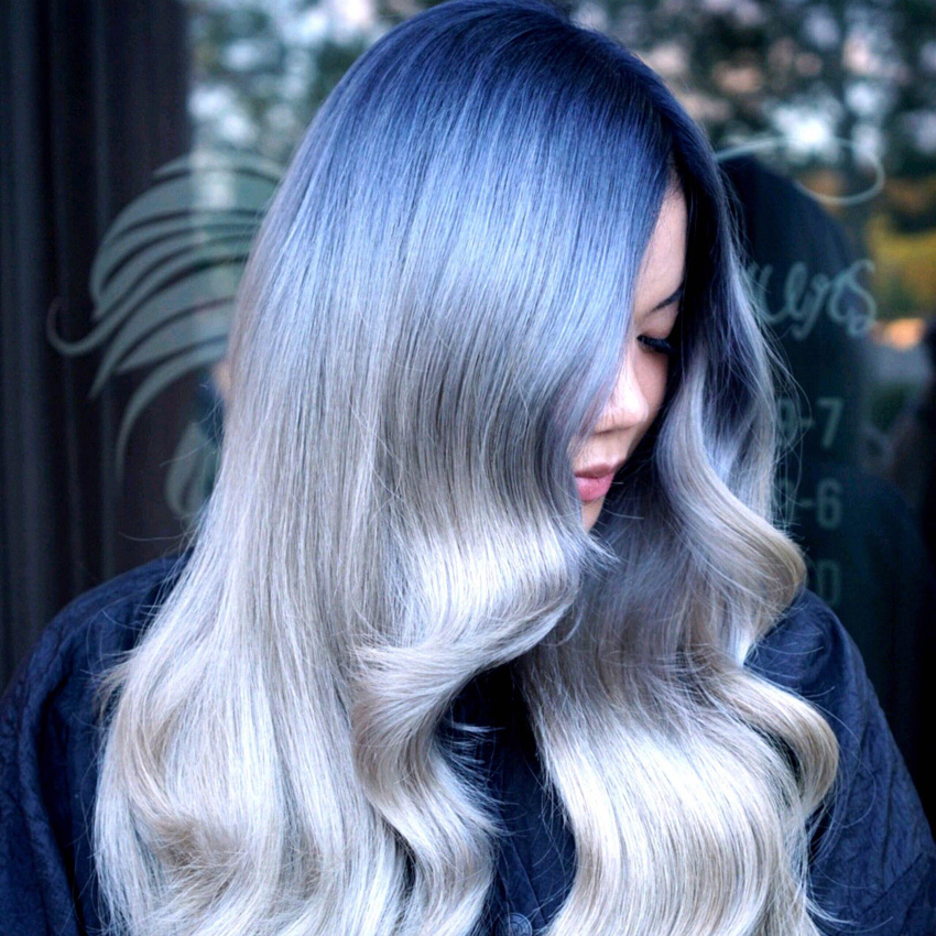Придайте своим волосам больше объема, сочетая несколько оттенков серебряных, синих и серых бликов.